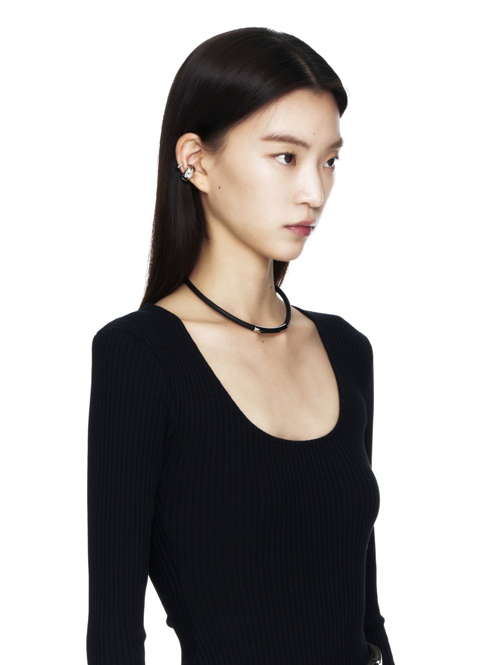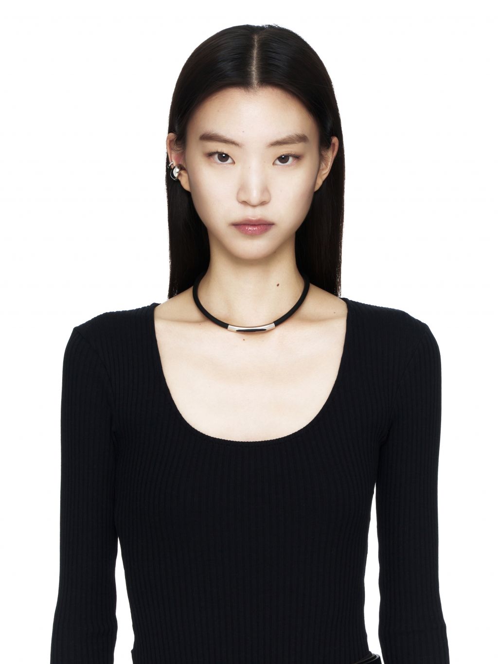 - 시그니처 파이프로 포인트를 준 Lamb Leather Necklace