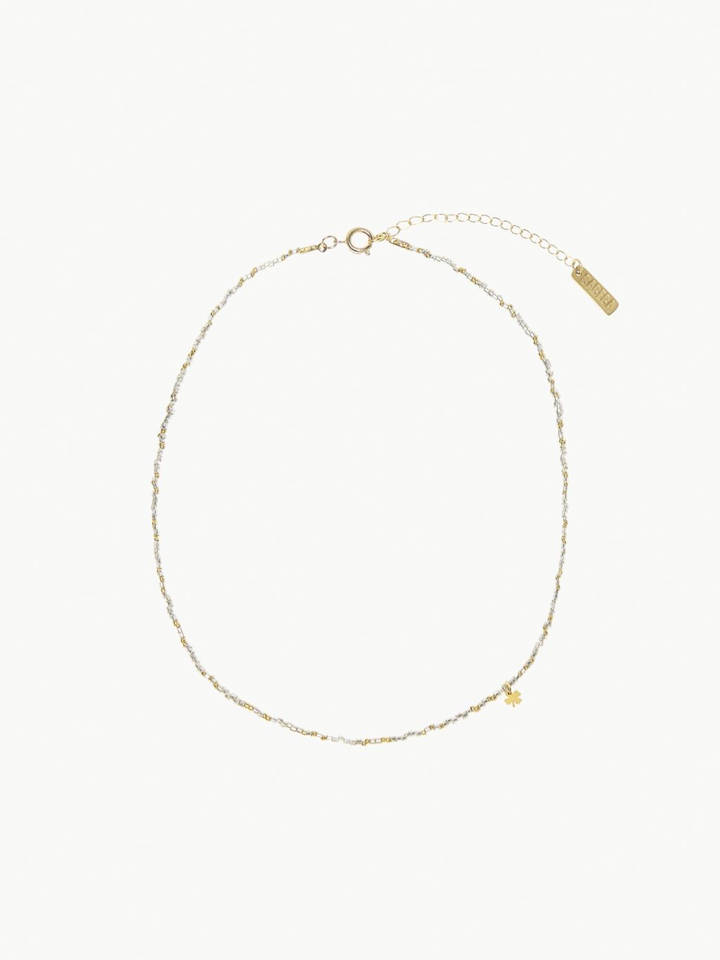 - 작은 비즈들이 불규칙하게 모여 만들어낸 독특한 네크리스 - 미니사이즈 네잎클로퍼 참 펜던트 디테일 - 블랙/골드 , 실버/골드 두 가지 컬러 - 엑스트라 체인 마감으로 길이 조절 가능 - 로고 각인 펜던트 |