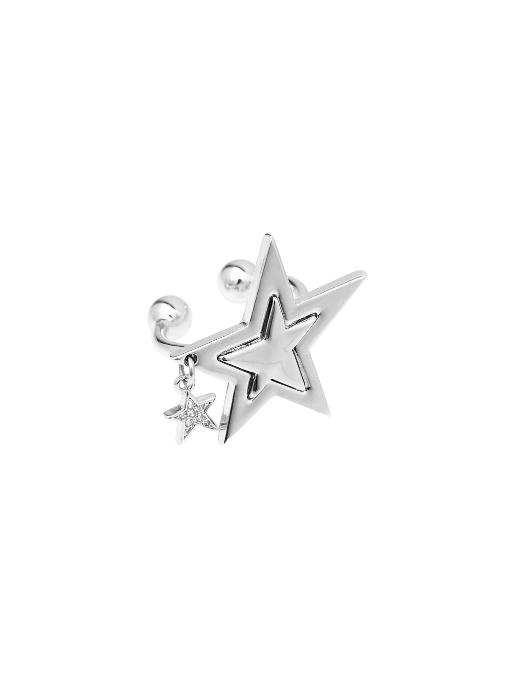 - 더블 레이어드 별 디테일의 오픈형 링 - 자연스럽게 드롭되는 별 펜던트 포인트 - 오픈형 구조로 손가락에 맞게 사이즈 조절이 가능한 디자인 - 후면의 로고 음각 디테일 |
