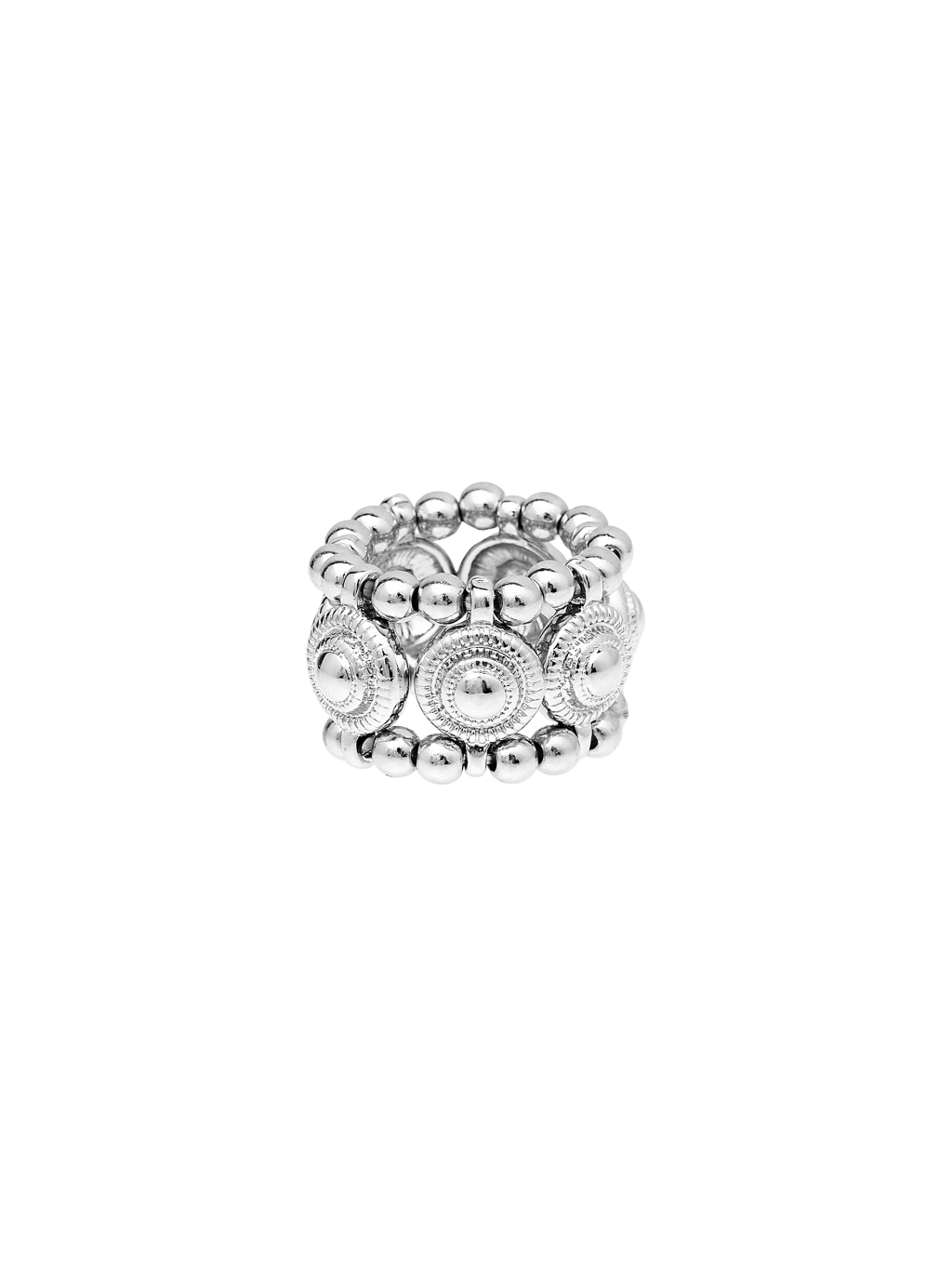 - 볼드한 디테일을 연결한 메탈 비즈 링 - 빈티지한 원형 장식 포인트 - 손가락에 맞게 늘어나는 구조로 편안한 착용감 - 남여 모두 착용하기 좋은 포인트 아이템 - 많은 사랑을 받았던 제품으로 리뉴얼하여 재출시 |